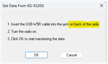The Wouxun KG-X2S20G and KG-XS20G Pro is programmed through the DATA port on the BACK of the radio.... NOT THE MIC JACK!! The cable will plug-in to the mic jack, but design of the radio does not include programming through the mic jack.