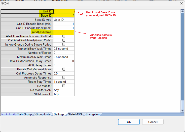 - Accessed in the programmer through Settings | NXDN Settings